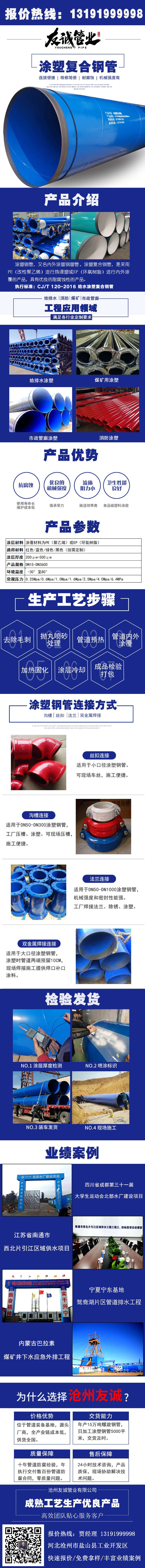 內外涂塑無縫鋼管,涂塑鋼管,又名鋼塑復合管、涂塑復合鋼管,是采用PE(改性聚乙烯)進行熱浸塑或EP(環(huán)氧樹脂)進行內外涂覆的產(chǎn)品,具有優(yōu)良的耐腐蝕性能。同時涂層本身還具有良好的電氣絕緣性,不會產(chǎn)生電蝕。吸水率低,機械強度高,摩擦系數(shù)小,能夠達到長期使用的目的。還能有效的防止植物根系及土壤環(huán)境應