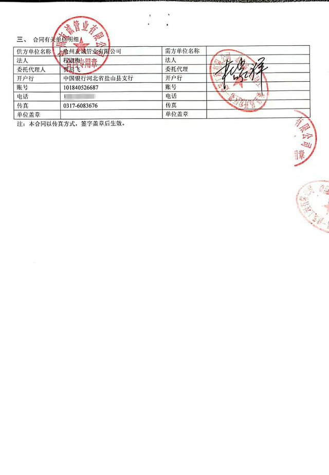 秦皇島開發(fā)區(qū)第一建筑工程有限公司與我公司,2016年簽訂秦皇島開發(fā)區(qū)引青供水工程項目防腐管道合同,我們已最優(yōu)質(zhì)的產(chǎn)品質(zhì)量,順利愉快的完成了這次合作,感謝客戶對我們的信賴,我公司將一如既往再創(chuàng)輝煌